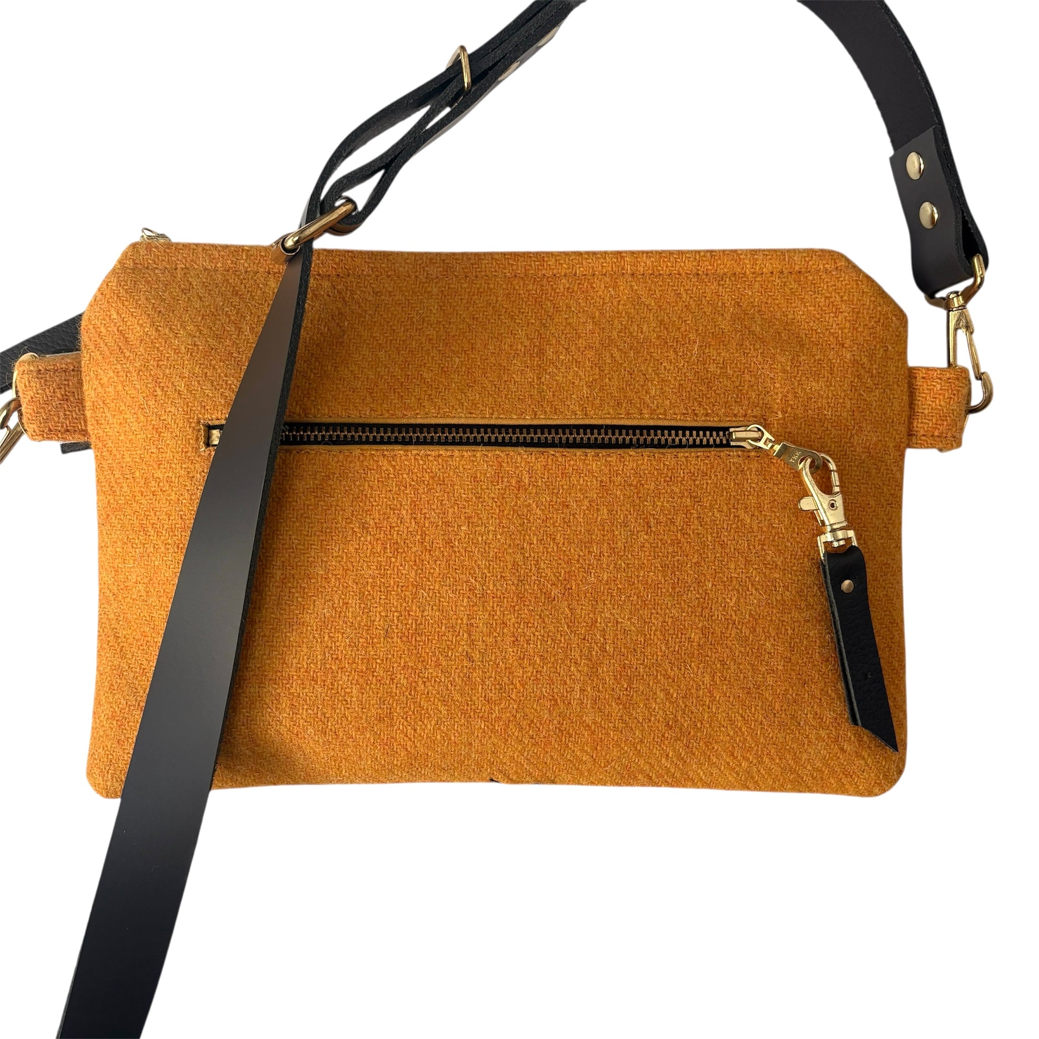 These Messengers Bags have been made from Harris Tweed that has been sourced directly from the Hebrides. The 100% wool fabric is rich in colour due to the nature of the yarn dying processes applied during production. Inspired by nature, the design has been individually silkscreen printed by hand and the finished piece has been lined with cotton fabric and includes an inside pocket. Each bag includes a leather adjustable cross the body strap and a has a rear pocket for easy access to phones etc.